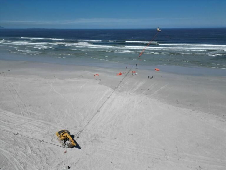 Atterrage séparé à Luanda. Pose et post-ensouillage de 7,2 km de câble à fibre optique