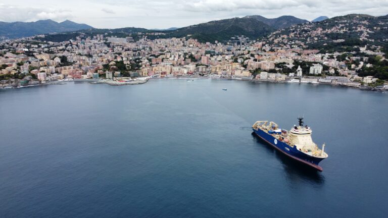 Post-ensouillage de 39 km d’un câble à fibre optique.