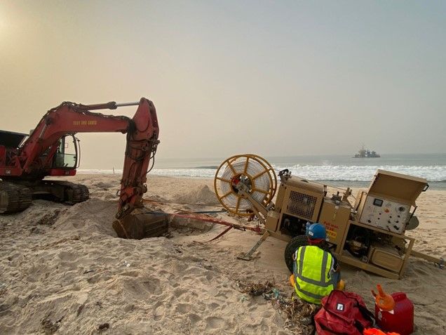Atterrage séparé à Qua Lboe. Pose et post-ensouillage de 22,4 km de câble à fibre optique