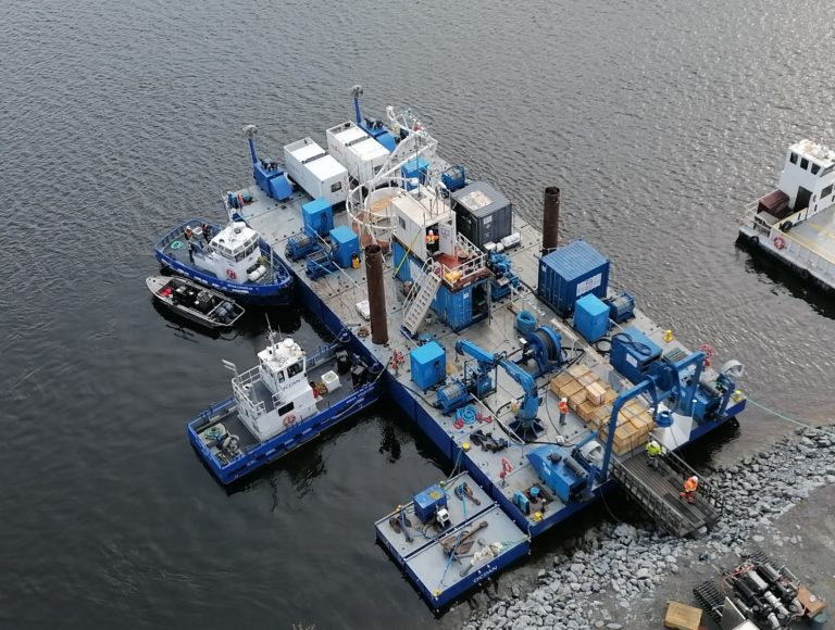 Travaux de post-ensouillage sur un ombilical.