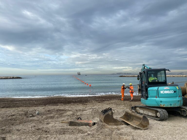 Atterrage séparé à Luanda. Pose et post-ensouillage de 7,2 km de câble à fibre optique