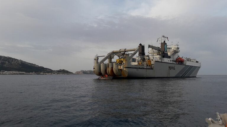 Atterrage séparé à Lagos. ensouillage de 2,8 km de câble à fibre optique